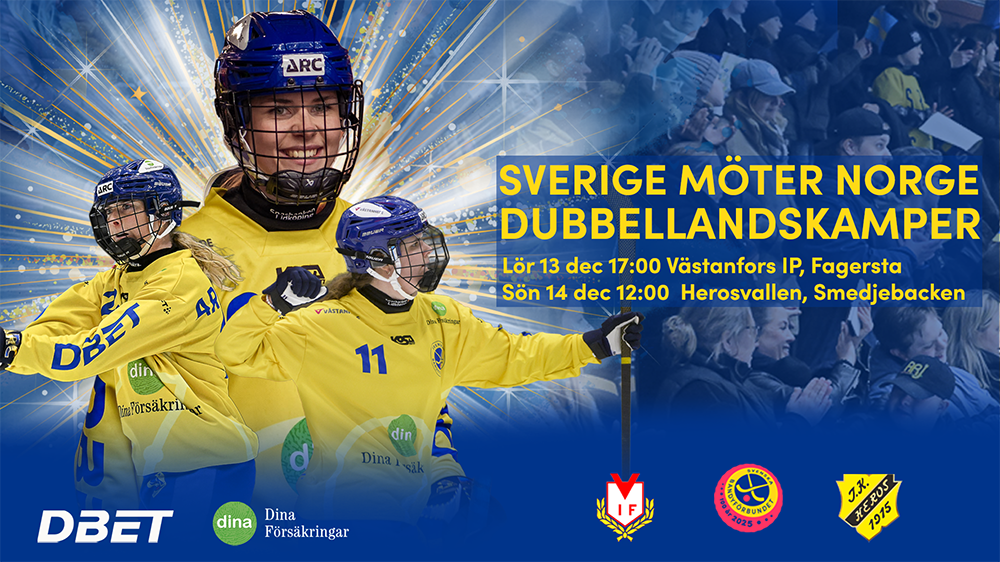 Lördagen den 13 och söndagen den 14 december möter Sveriges damlandslag Norge i två landskamper, på klassisk bandymark. Lördagens match spelas på Västanfors IP i Fagersta och söndagens på Herosvallen i Smedjebacken , två orter med starka bandytraditioner.